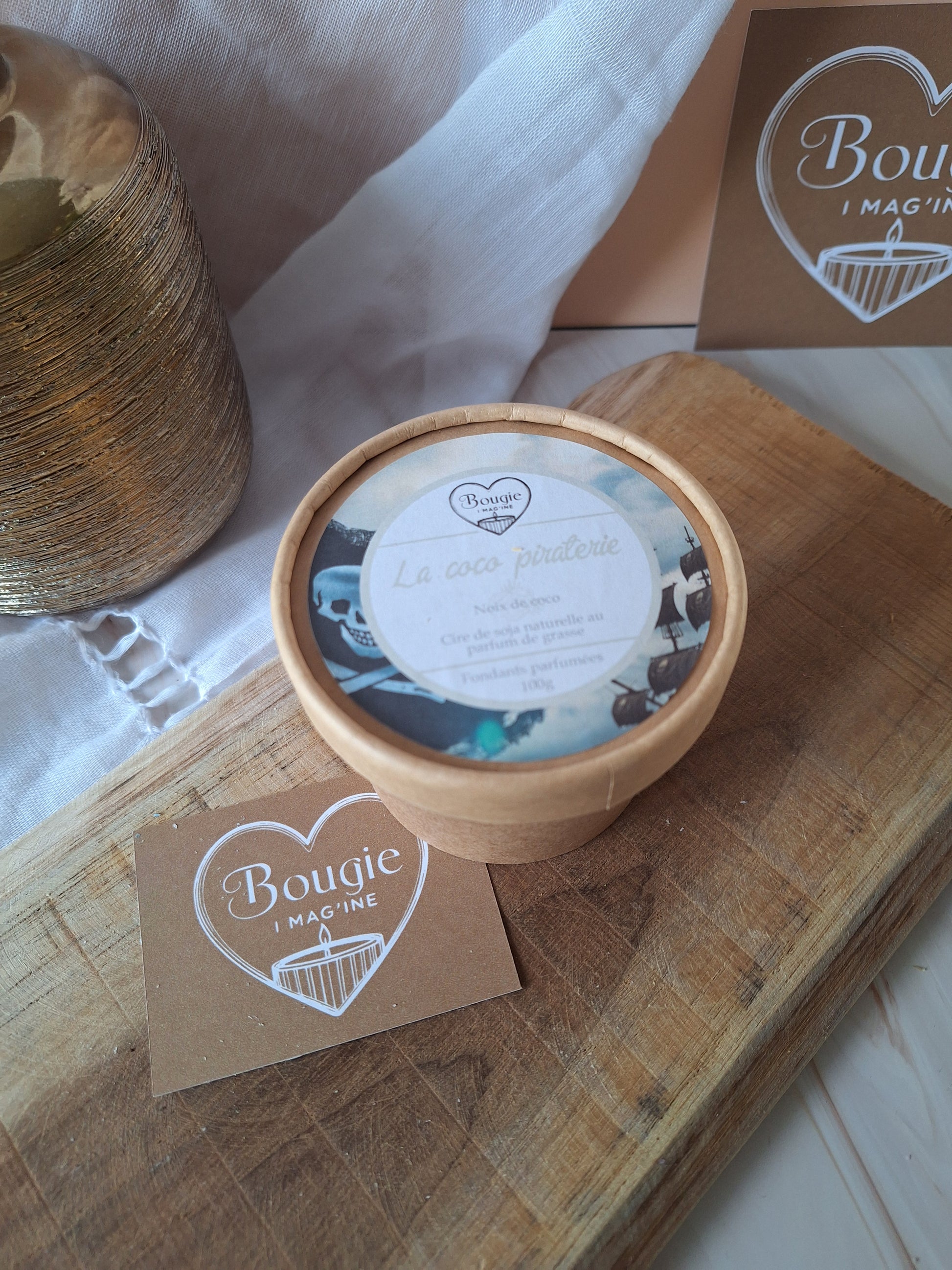 Cette jolie petite boîte renferme 100g de fondants parfumés à la noix de coco : une escapade tropicale, douce et solaire, coulés à la main avec amour, dans une cire végétale naturelle.