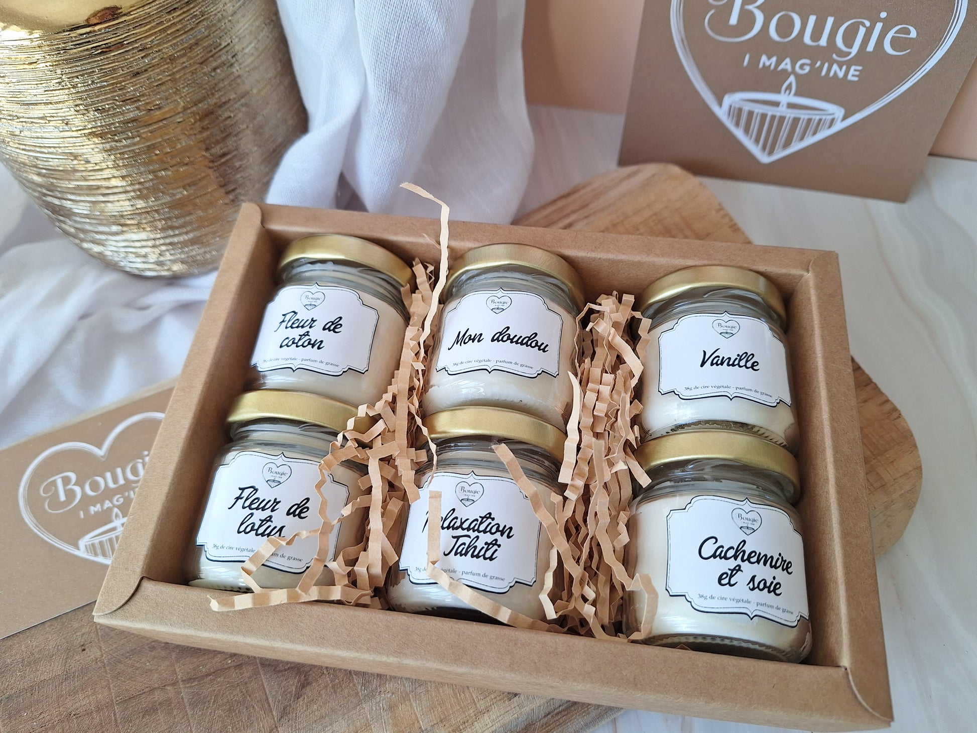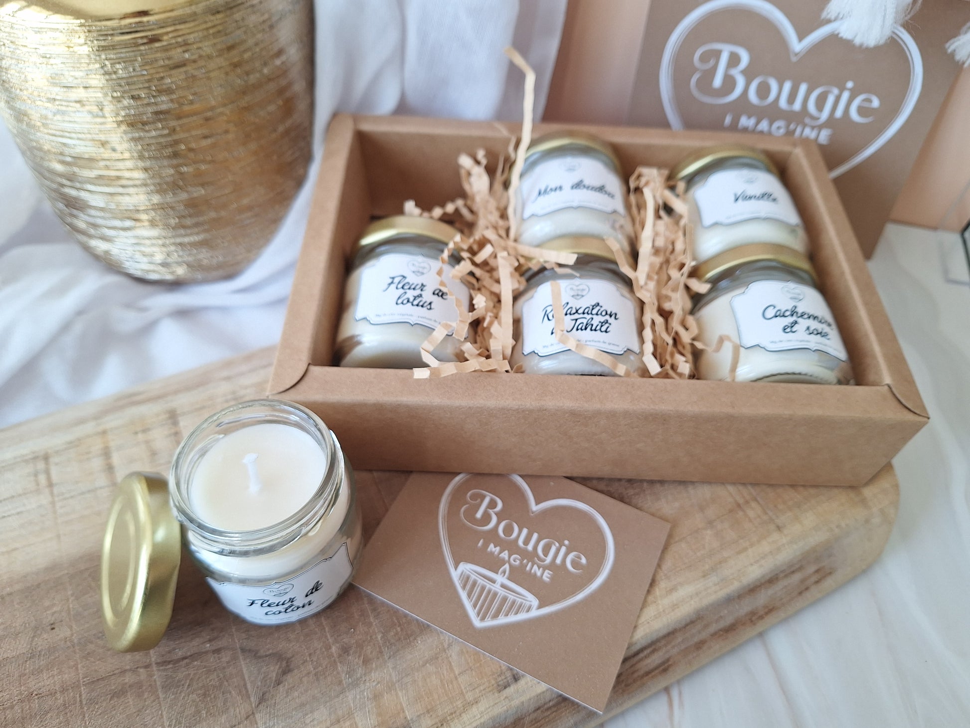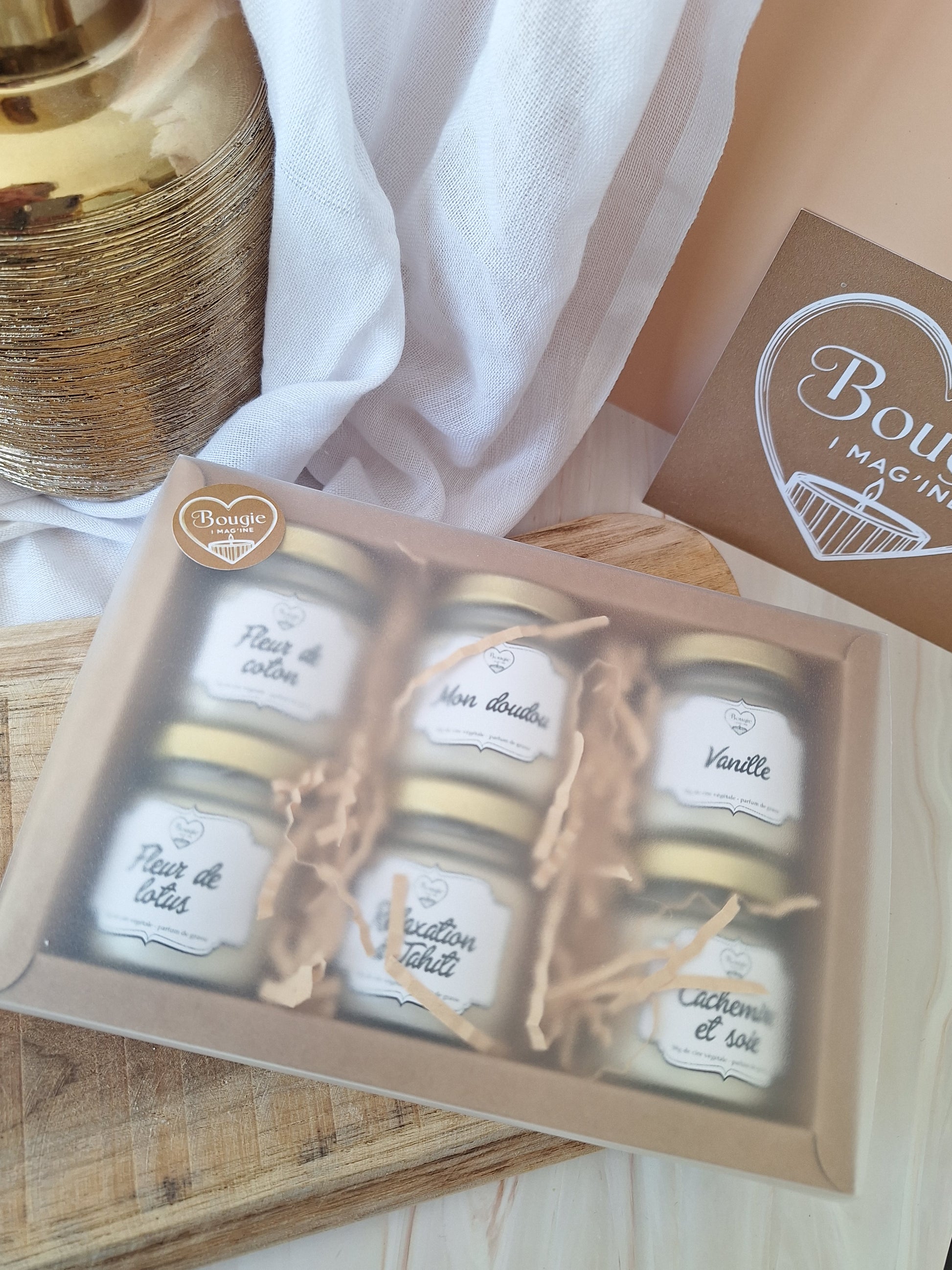 - Coffret Détente : un cocon de sérénité. Des bougies aux parfums doux, enveloppants, propices au calme et à la relaxation. Parfait pour accompagner un bain chaud, une méditation ou une soirée paisible. Parfums : Fleur de lotus, Mon Doudou, Vanille, Fleur de coton, Relaxation à Tahiti, Cachemire et soie.