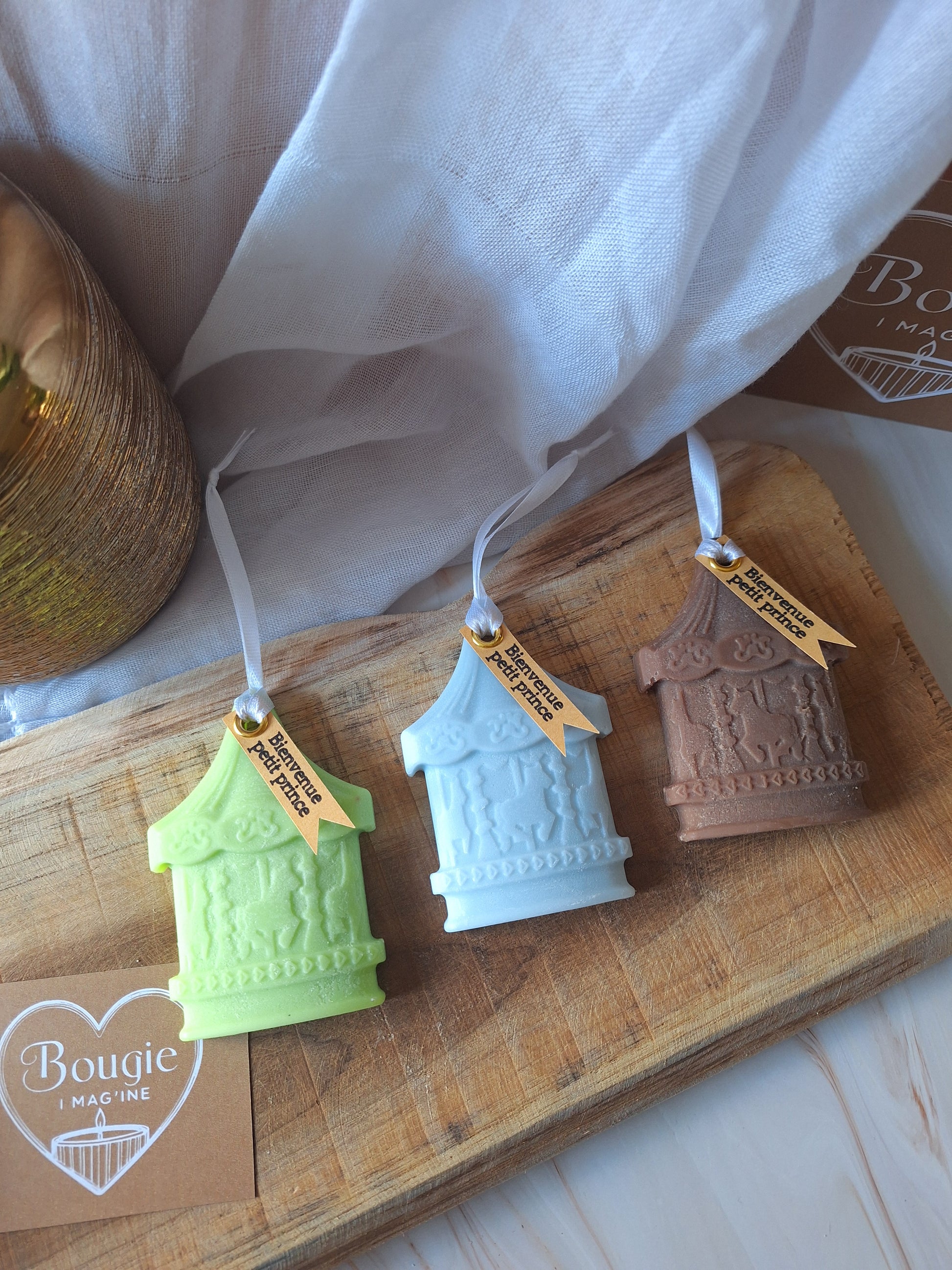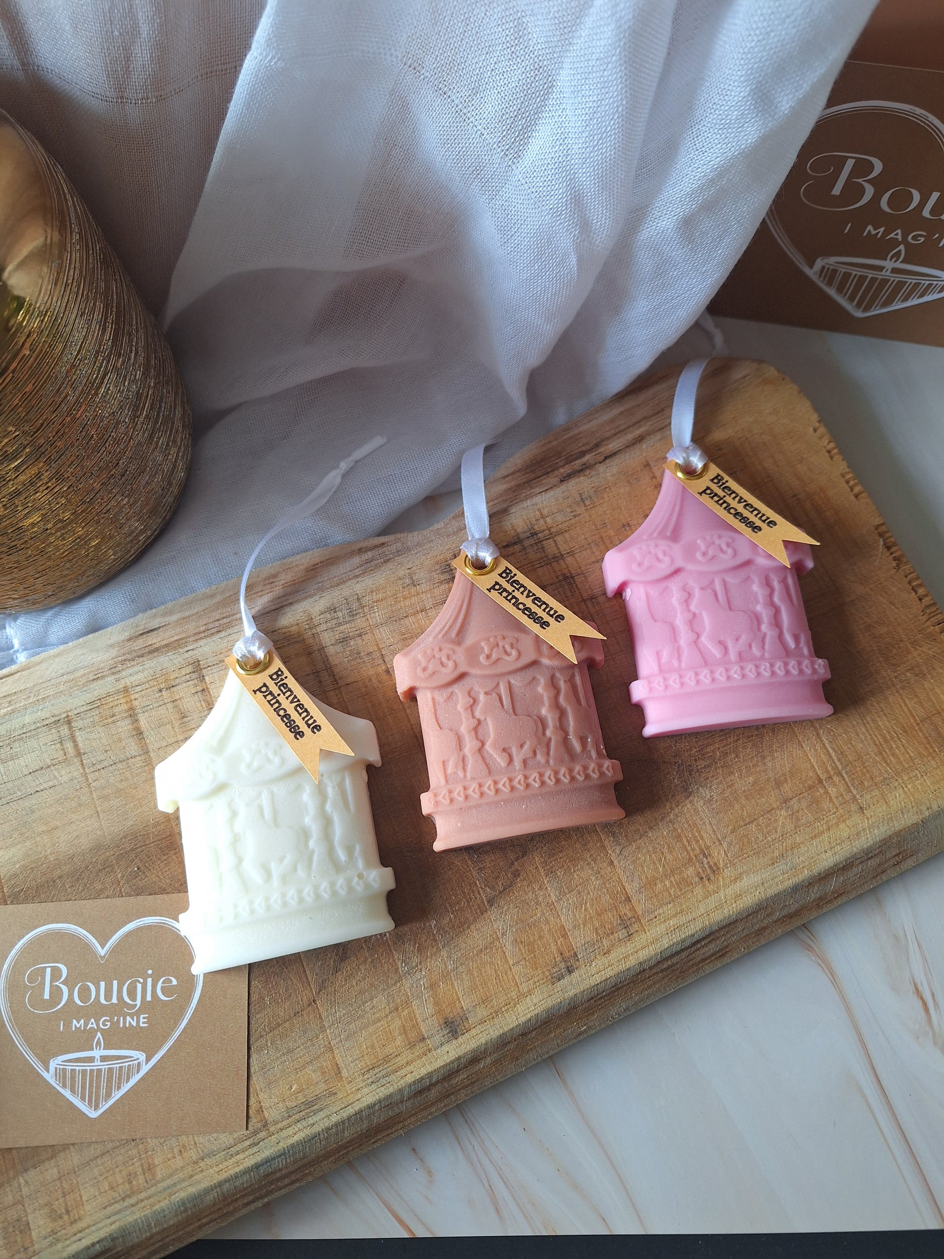 Offrez un souvenir inoubliable et plein de charme avec ma suspension en forme de carrousel, fabriquée à la main à partir de cire de soja naturelle. Ce délicat carrousel, symbole de joie et de légèreté, est un ajout merveilleux pour célébrer un baptême. Chaque détail a été pensé pour capturer l’essence de ce moment unique et offrir à vos proches un souvenir parfumé qui créera une ambiance magique.